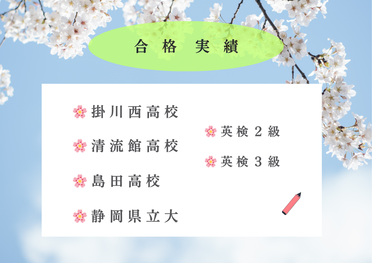 その結果、入試で実力テスト最高点を出すことができました。先生のおかげで頑張れました。(島田第一中・生徒 保護者)